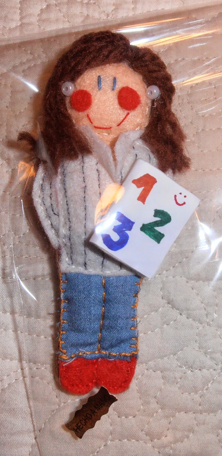 Detalle del interior. En esta ocasión la tela es la misma que he utilizado para la aplicación del corazón. Y rematado con una cinta de piquitos en rojo.